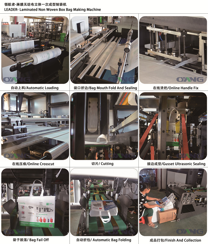 This machine is our 2014 latest design, always keep update. It can directly forming non woven box bag with loop handle autoamtically. The finished bag no need reverse. It's a perfect machine for win bag, drink bag, gift bag and shopping bag production